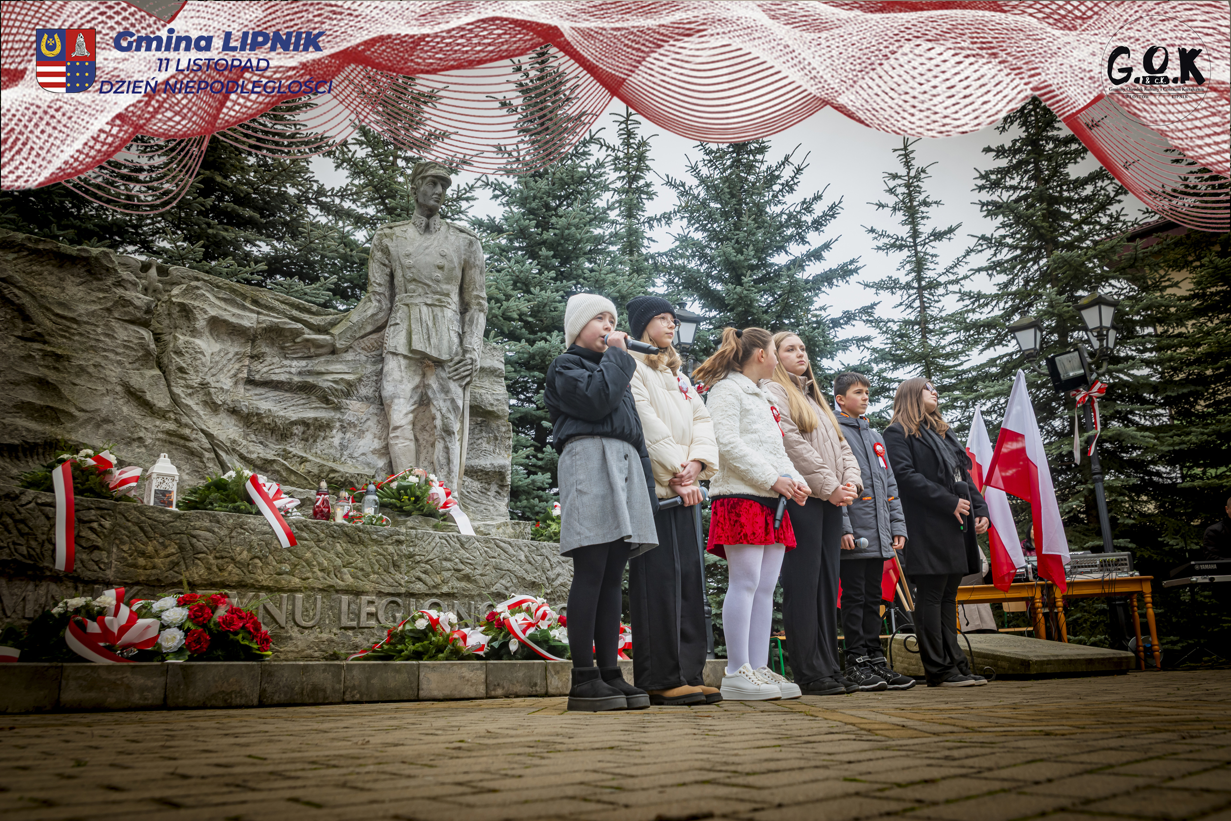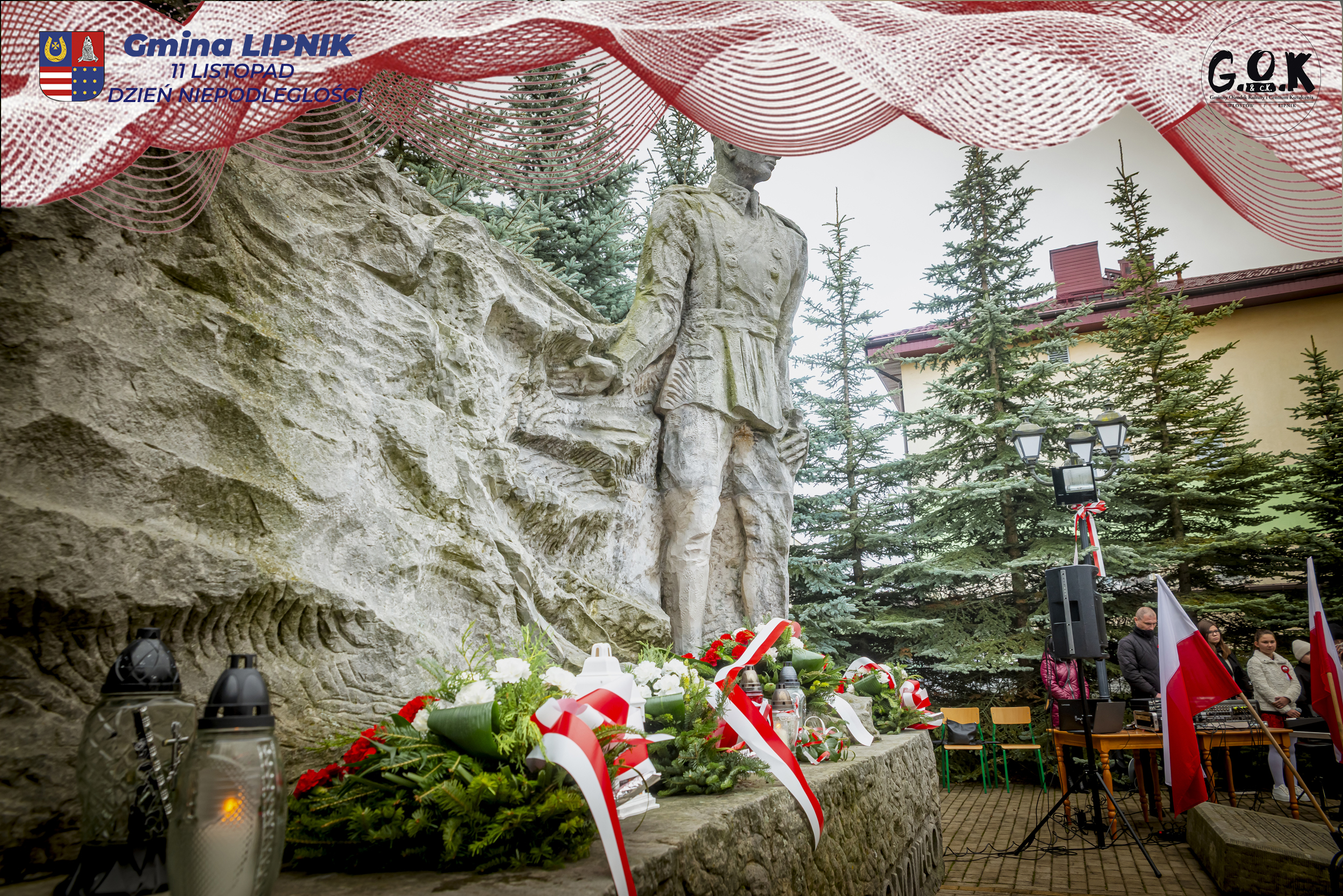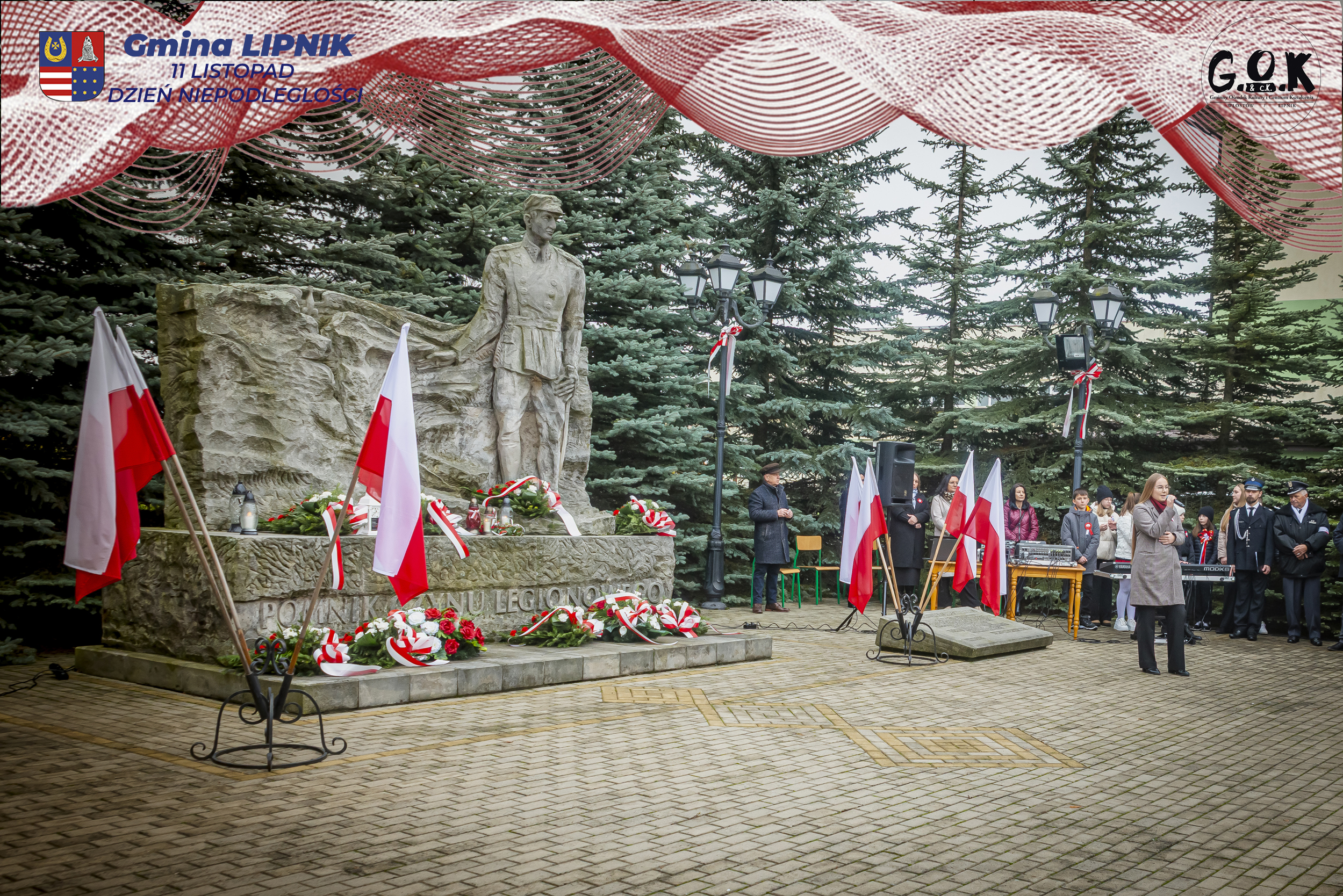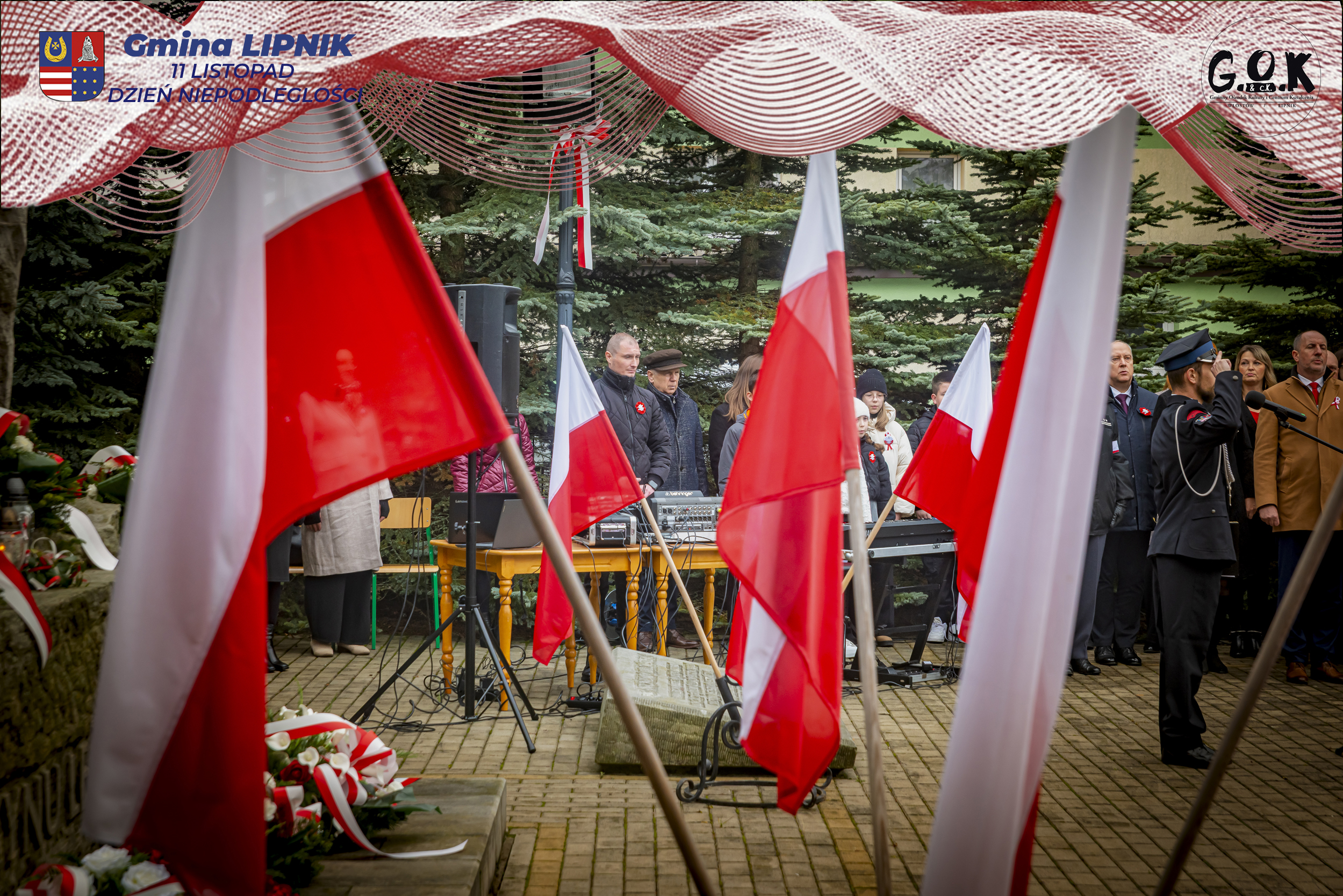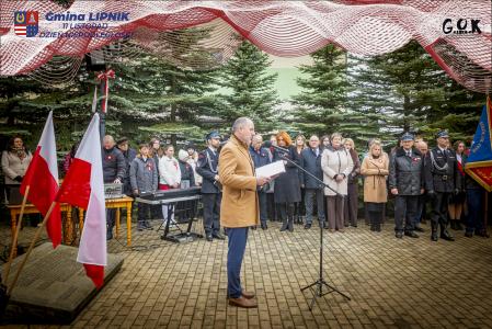 Po Mszy św. w kaplicy w Lipniku uczestnicy wraz ze sztandarami przeszli pod Pomnik Czynu Legionowego, gdzie w skupieniu złożono wieńce i kwiaty od delegacji samorządowych, instytucji i szkół, a przestrzeń wypełniły barwy i znaki pamięci.