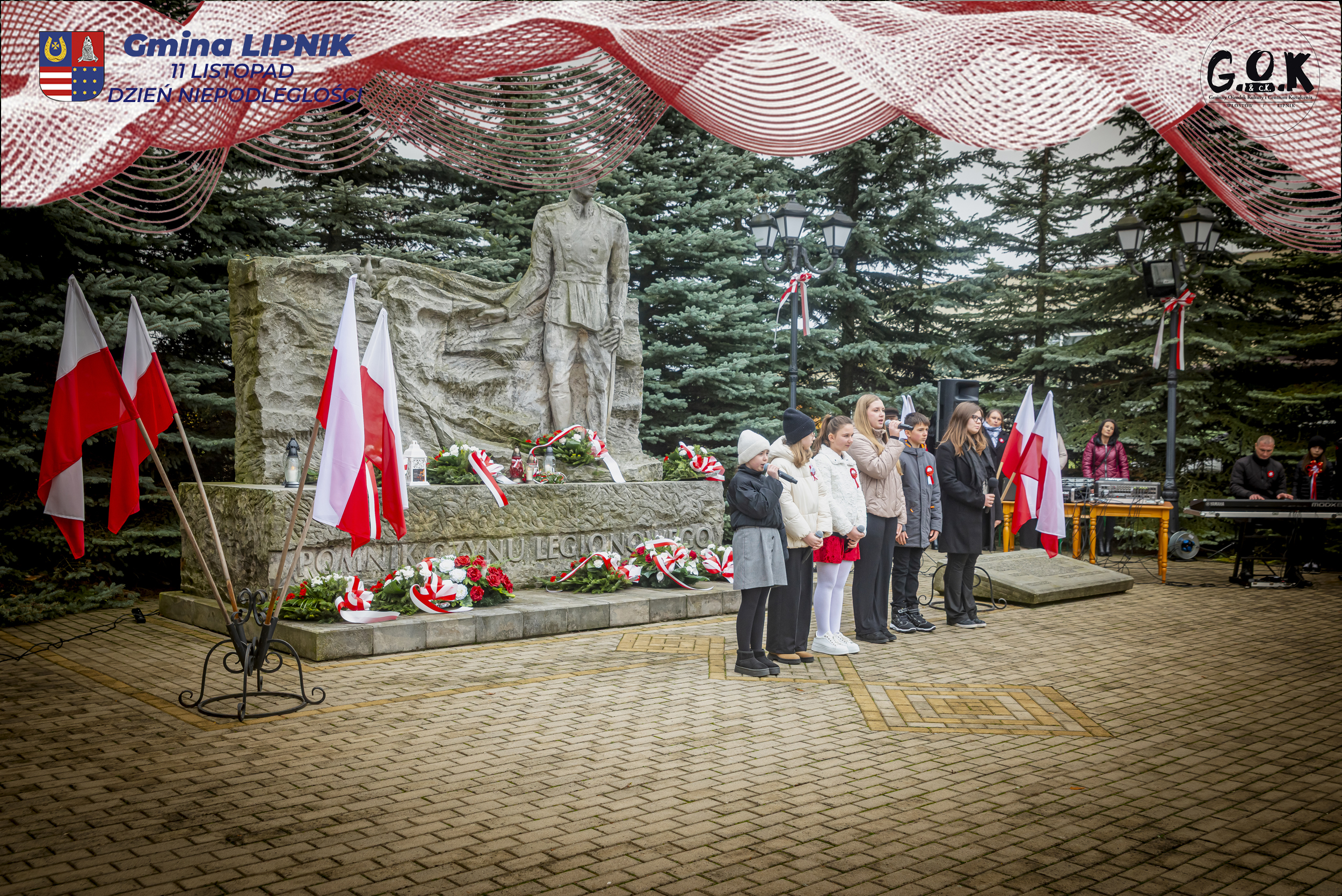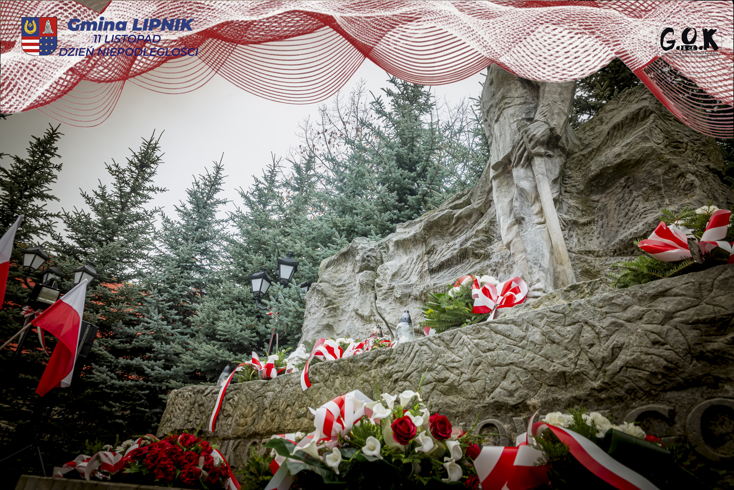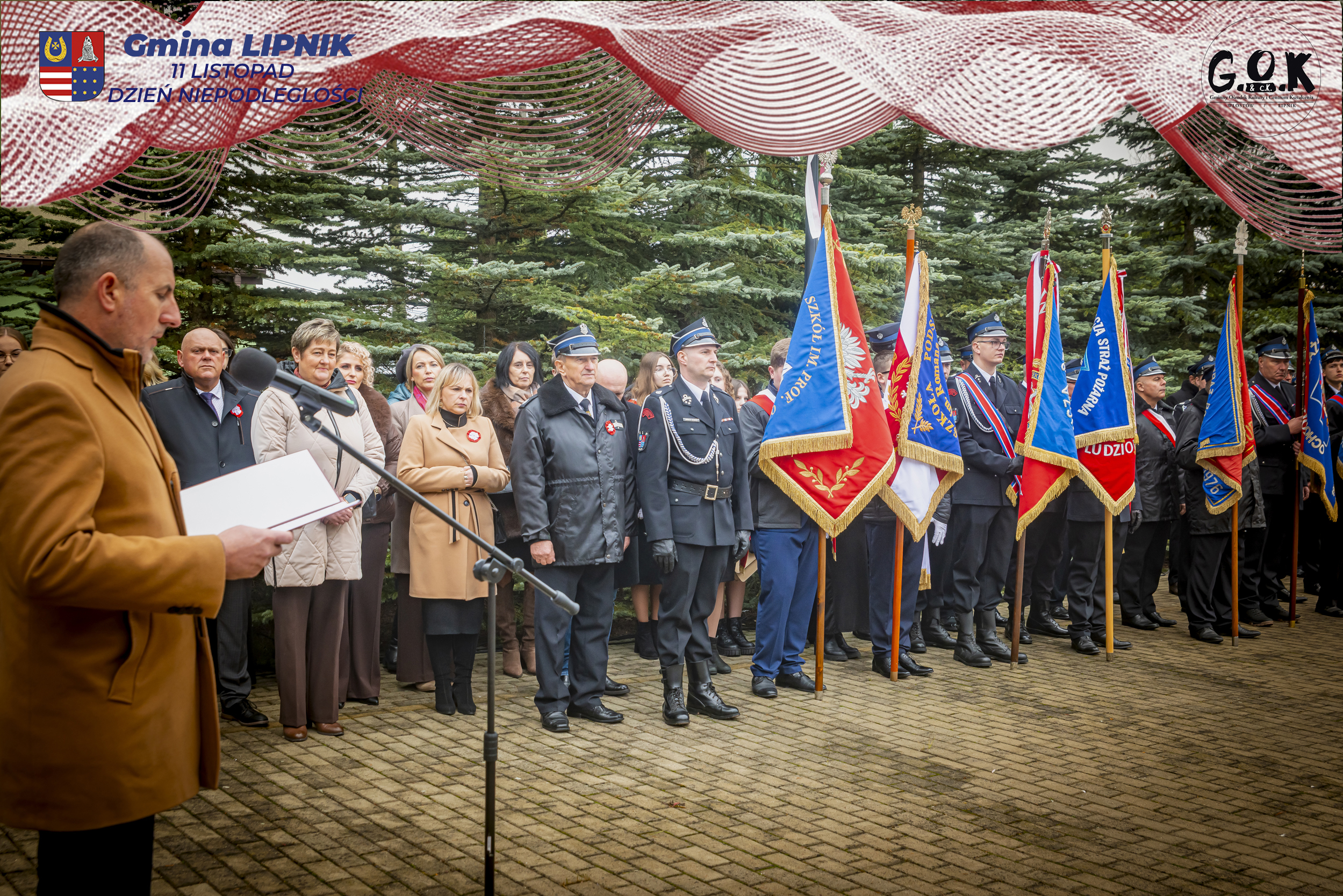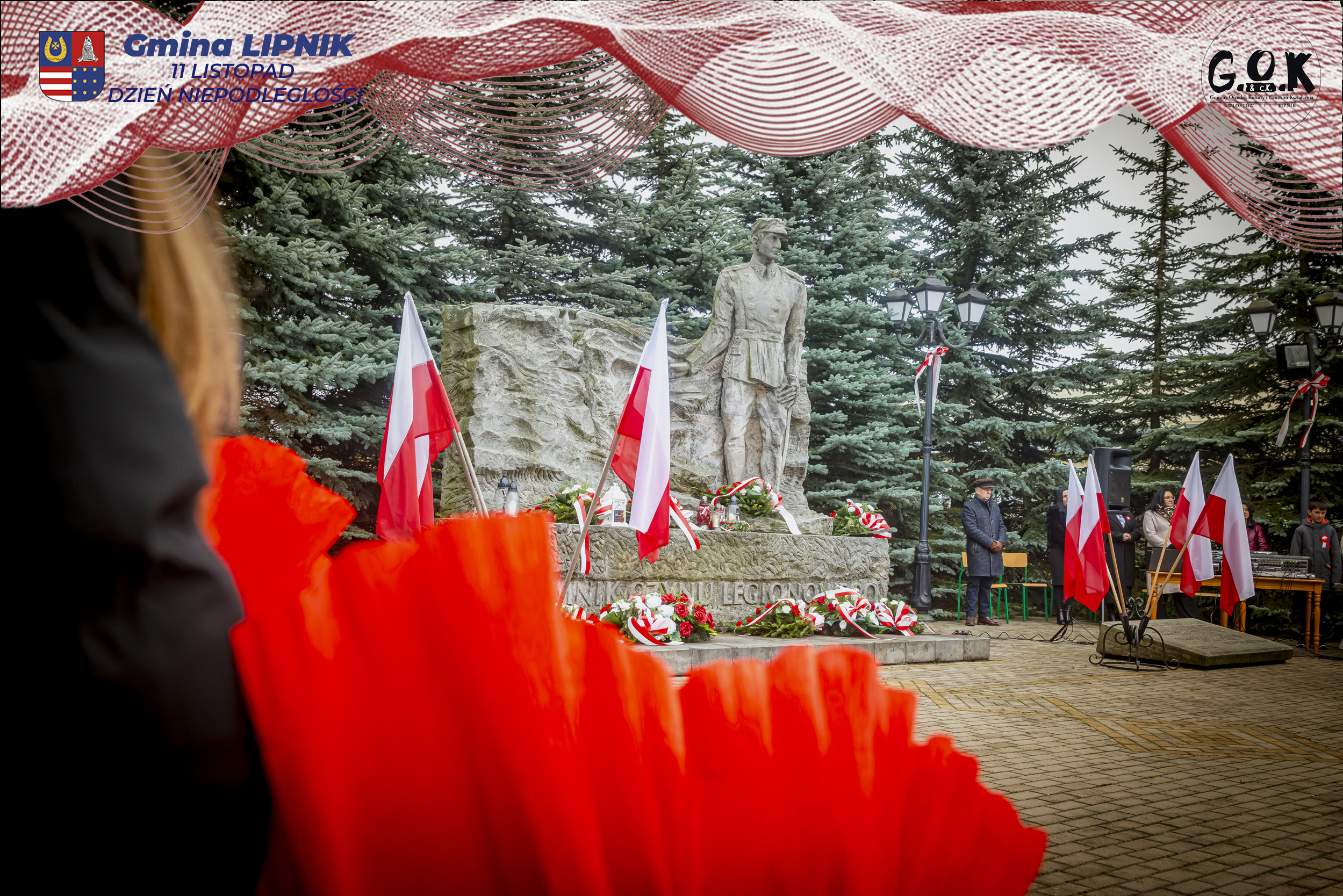 Po Mszy św. w kaplicy w Lipniku uczestnicy wraz ze sztandarami przeszli pod Pomnik Czynu Legionowego, gdzie w skupieniu złożono wieńce i kwiaty od delegacji samorządowych, instytucji i szkół, a przestrzeń wypełniły barwy i znaki pamięci.