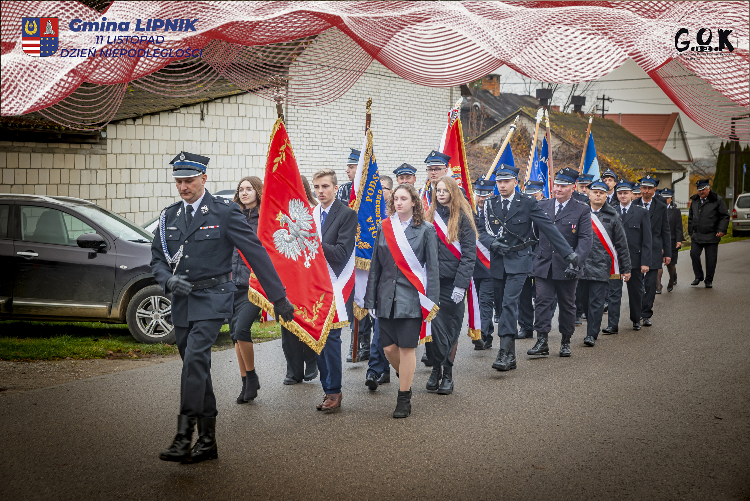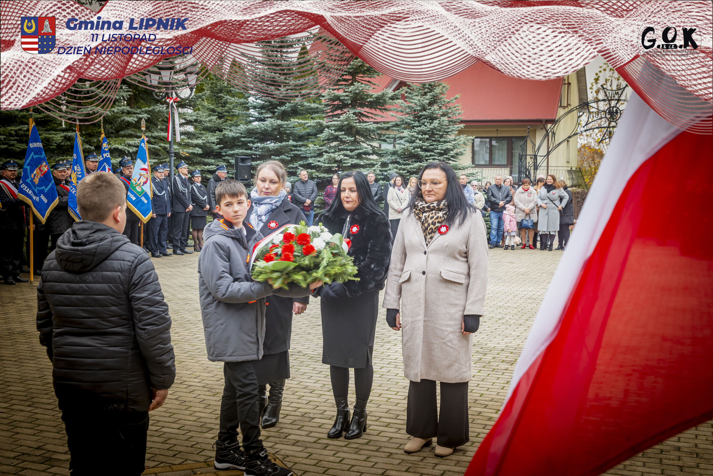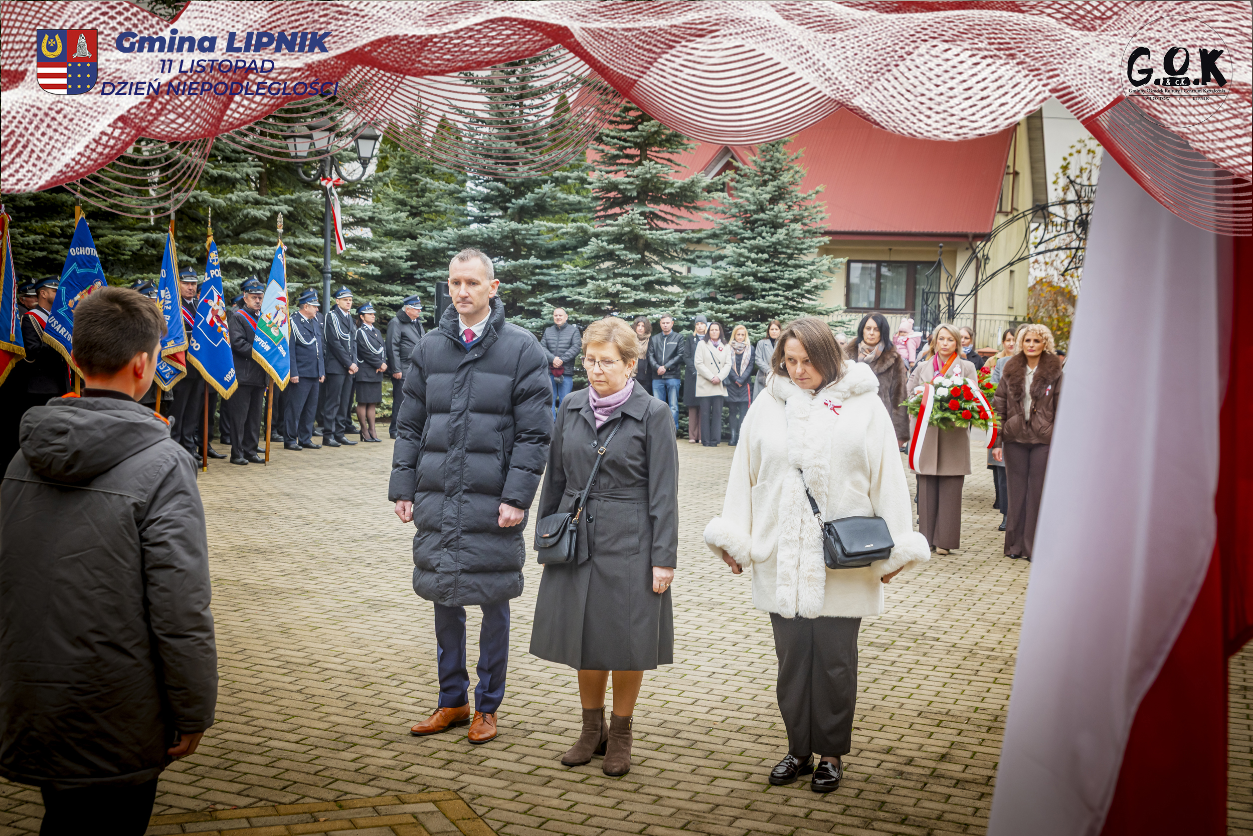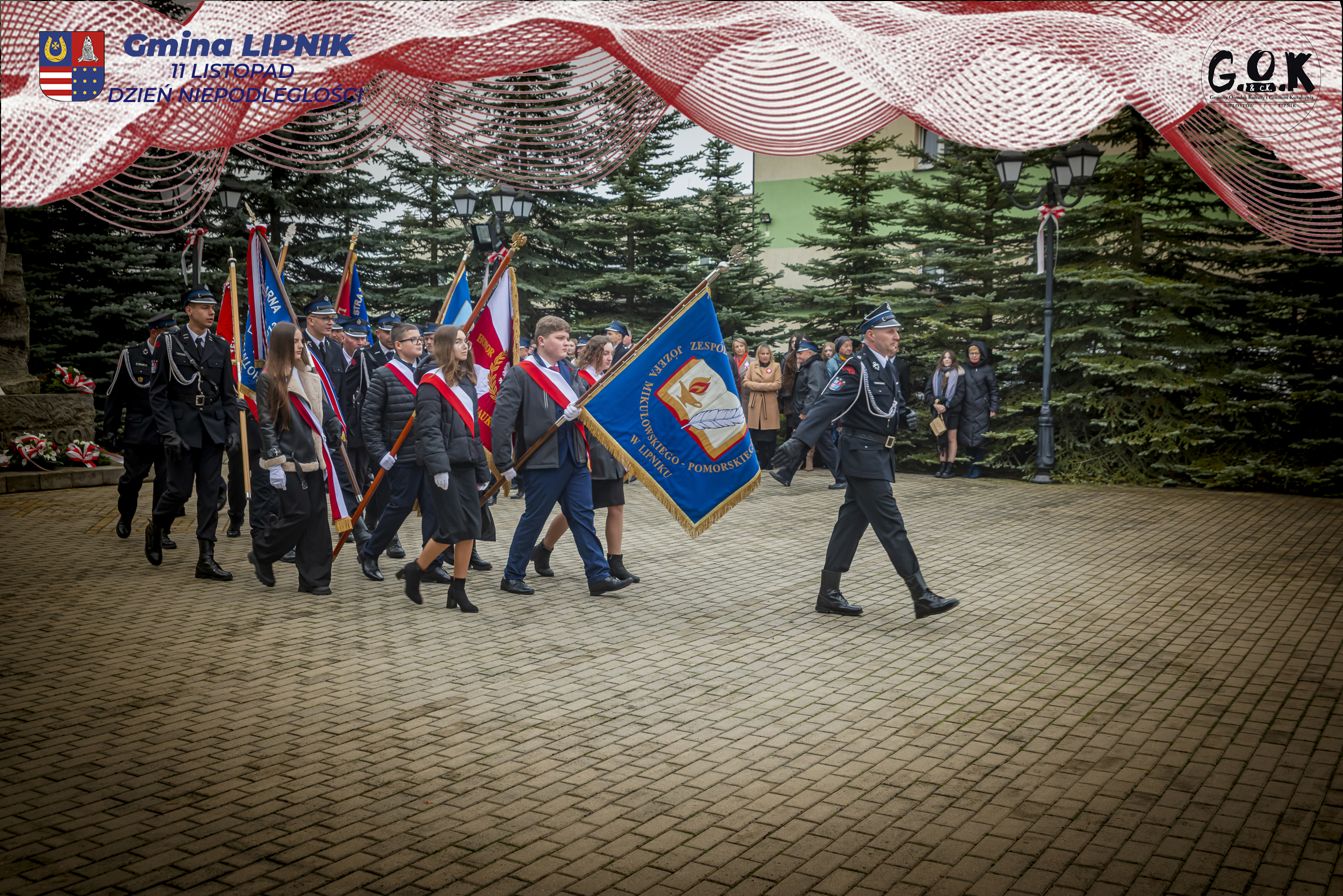 Po Mszy św. w kaplicy w Lipniku uczestnicy wraz ze sztandarami przeszli pod Pomnik Czynu Legionowego, gdzie w skupieniu złożono wieńce i kwiaty od delegacji samorządowych, instytucji i szkół, a przestrzeń wypełniły barwy i znaki pamięci.
