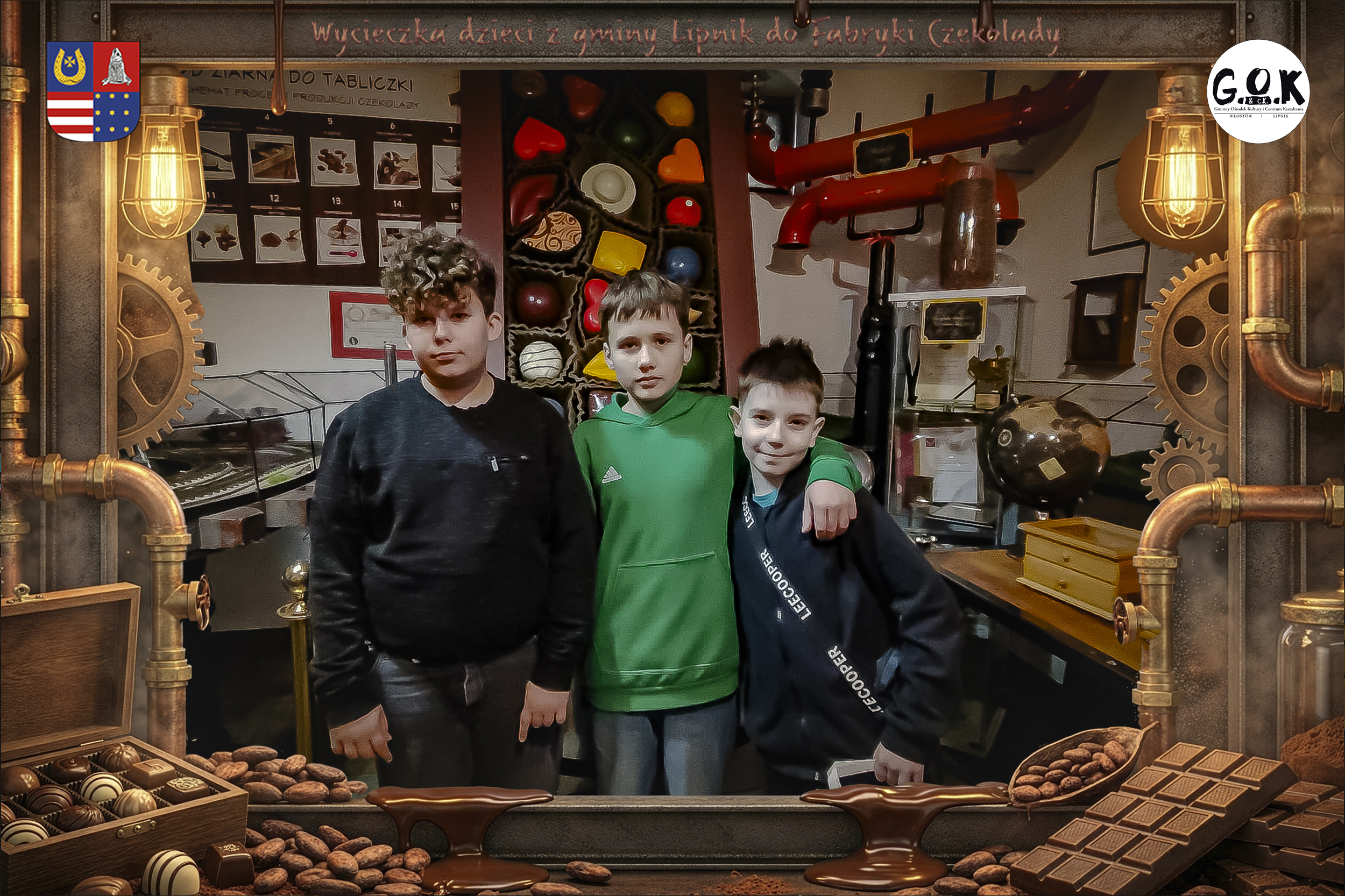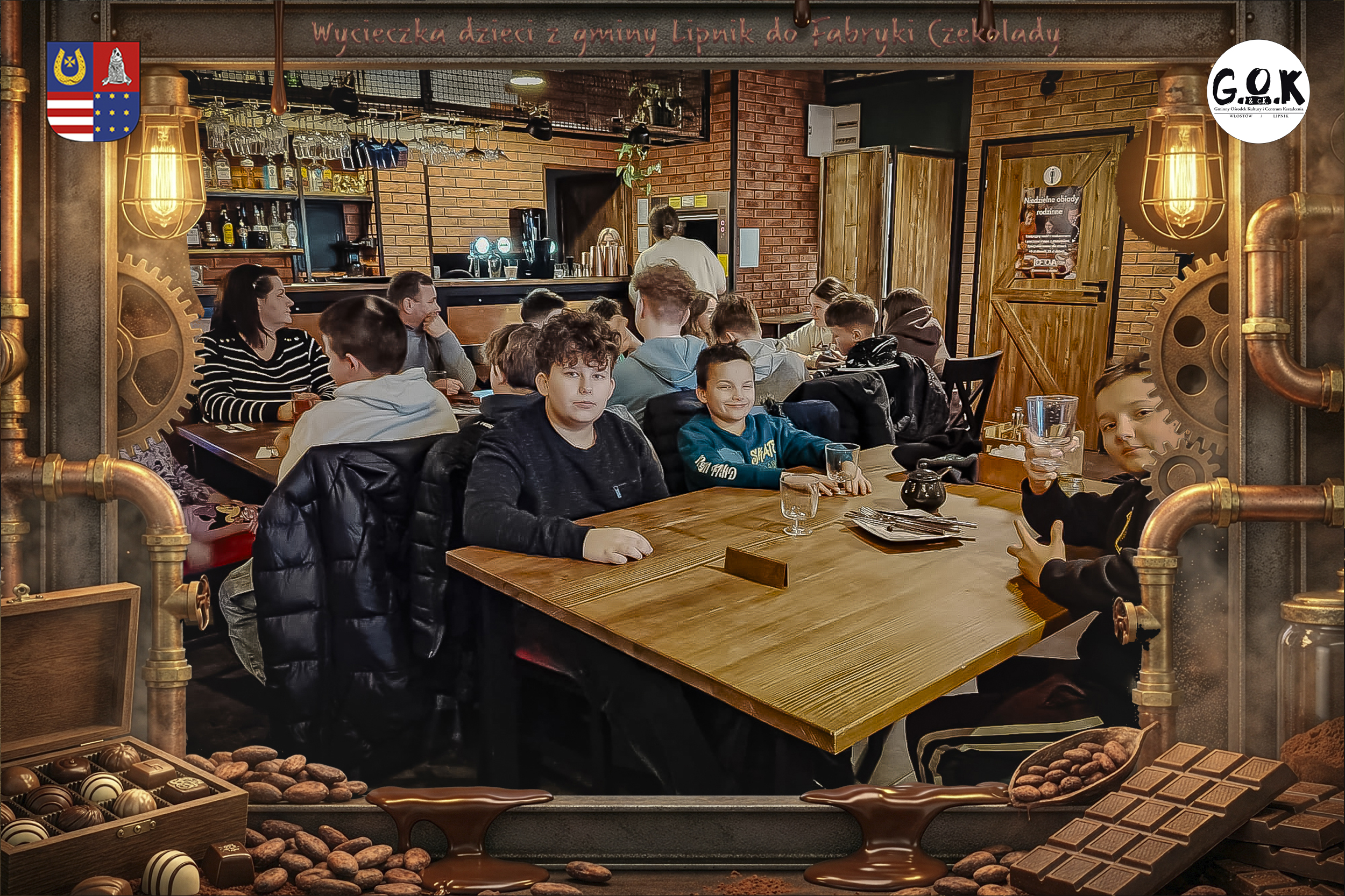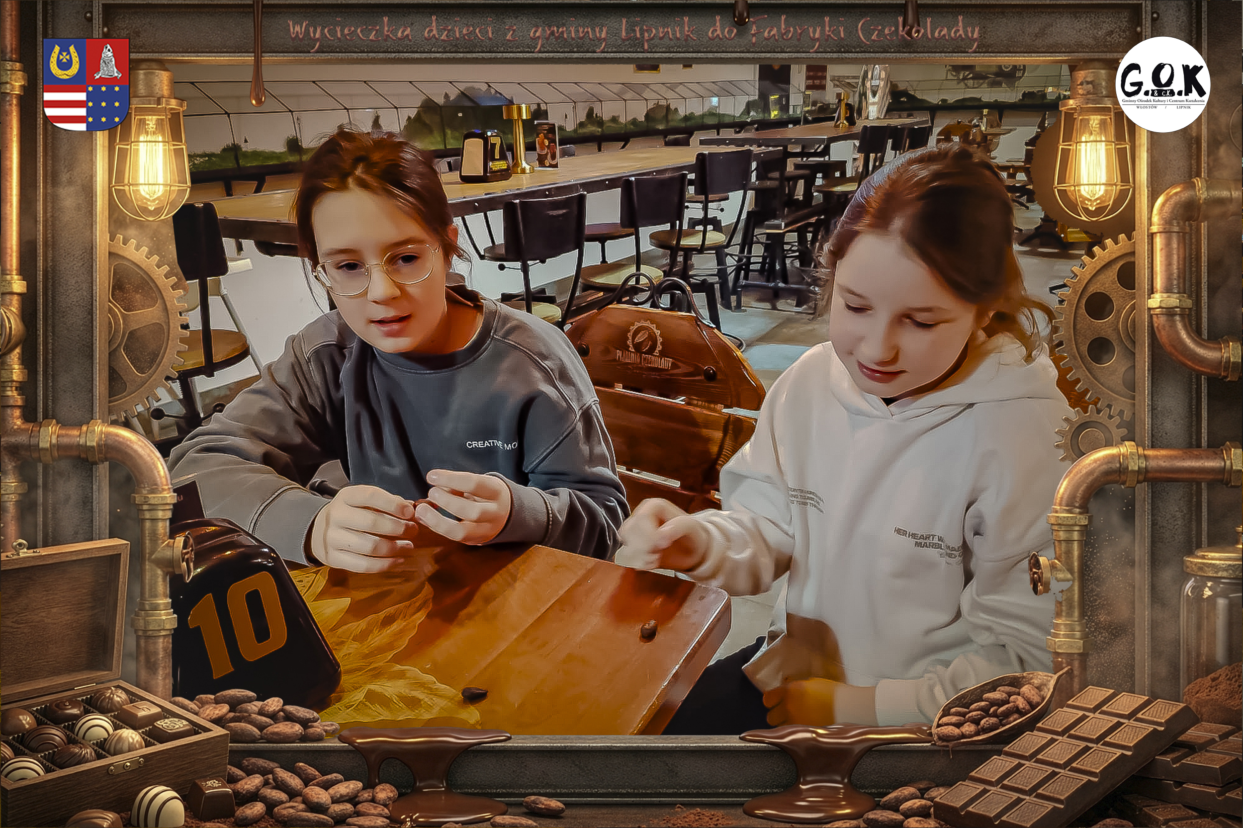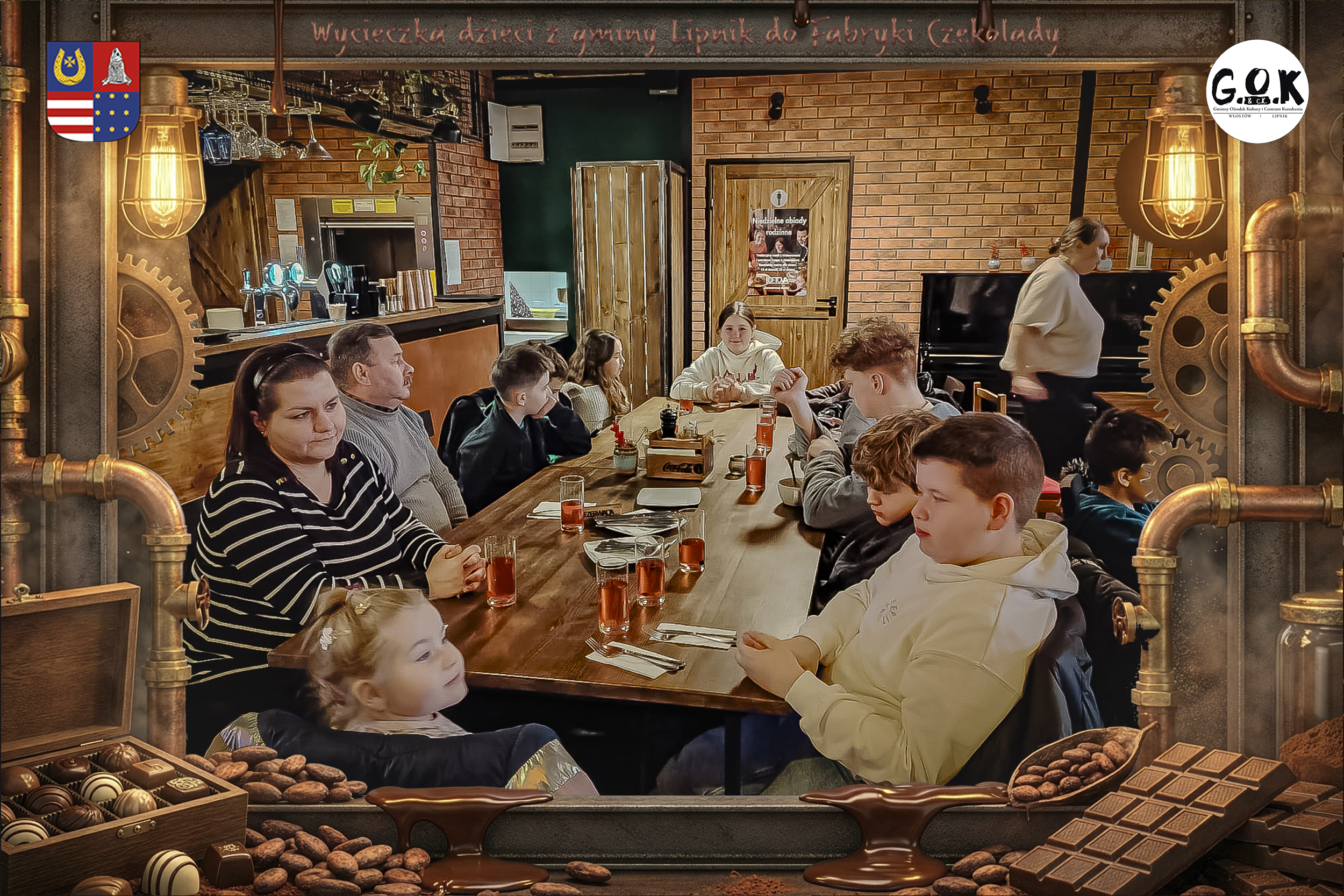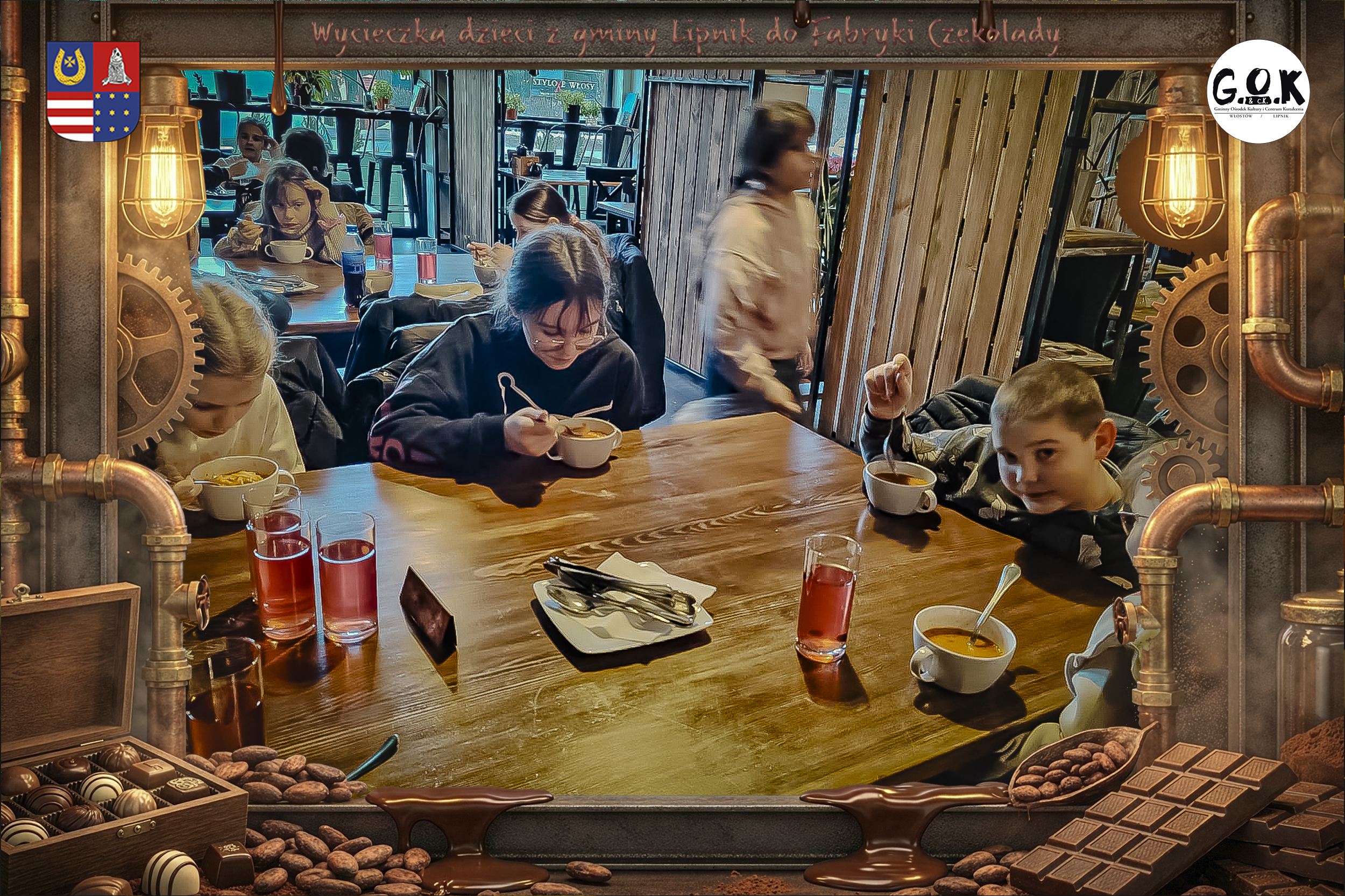 Dzieciaki wskoczyły do czekoladowego świata, gdzie miedziane rury, koła zębate i cały ten „fabryczny teatr” robią klimat jak z filmu, tylko zamiast dymu z komina unosi się zapach kakao. Na zdjęciach widać to najlepiej: raz cisza przed burzą (pusta sala, gotowa na małych odkrywców), a chwilę później już pełen ruch, śmiech, ciekawskie spojrzenia i te miny typu: „Dobra, tu się dzieje magia”