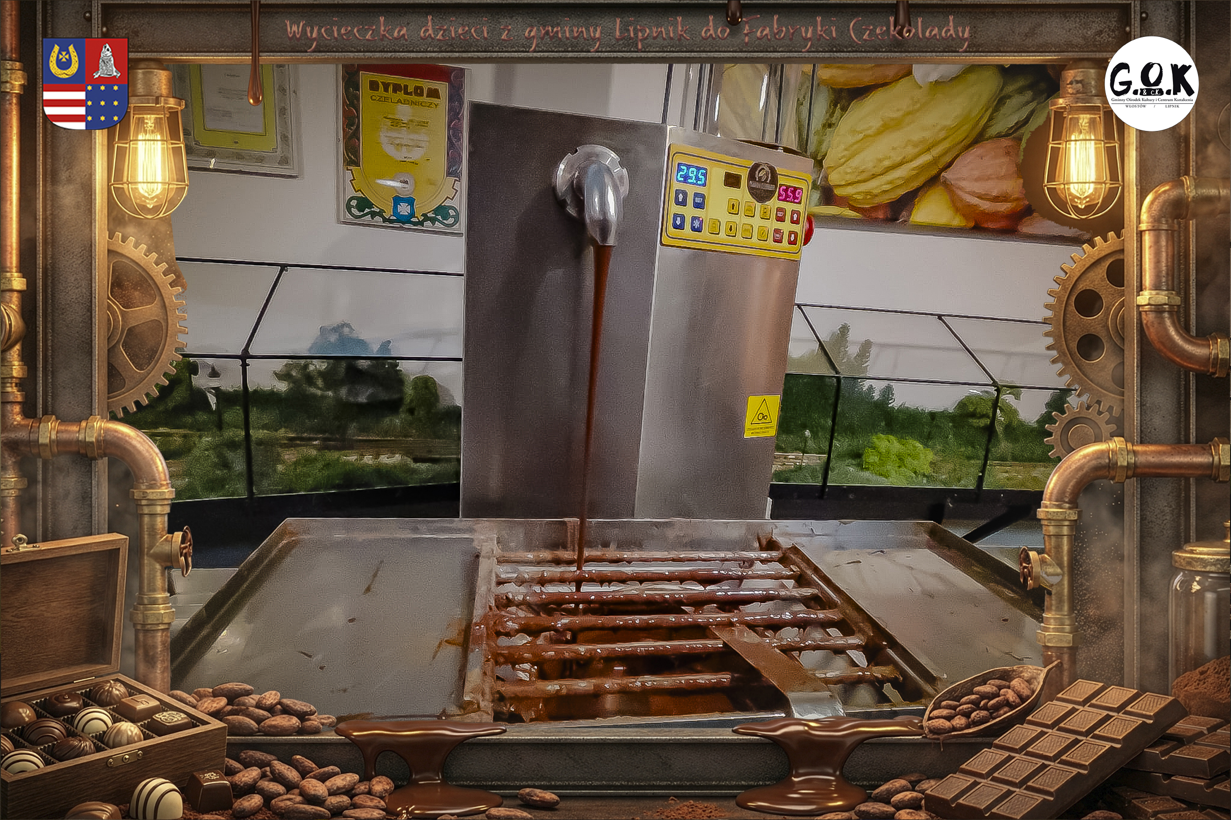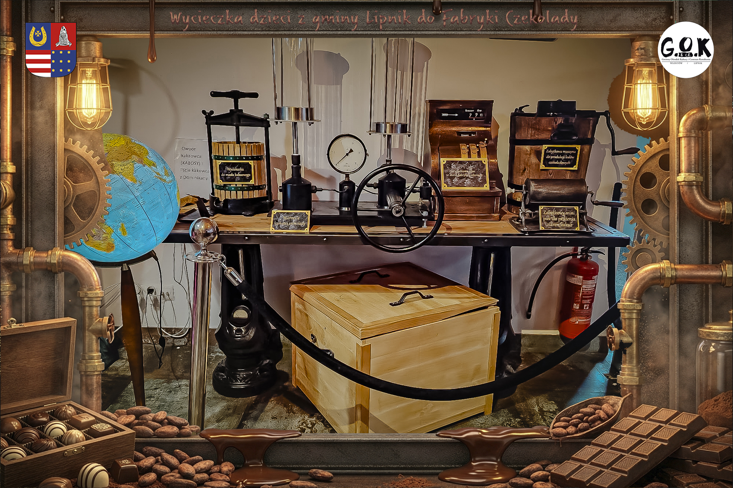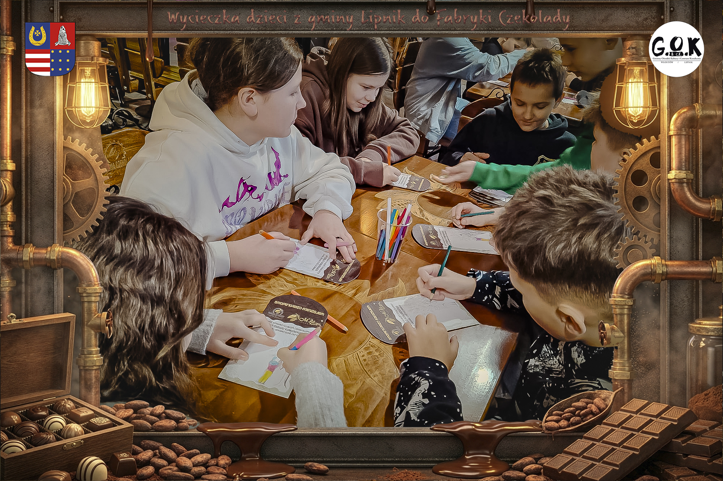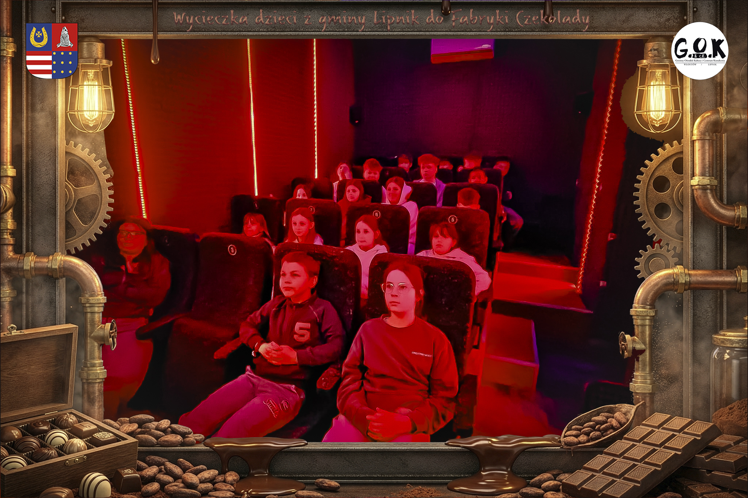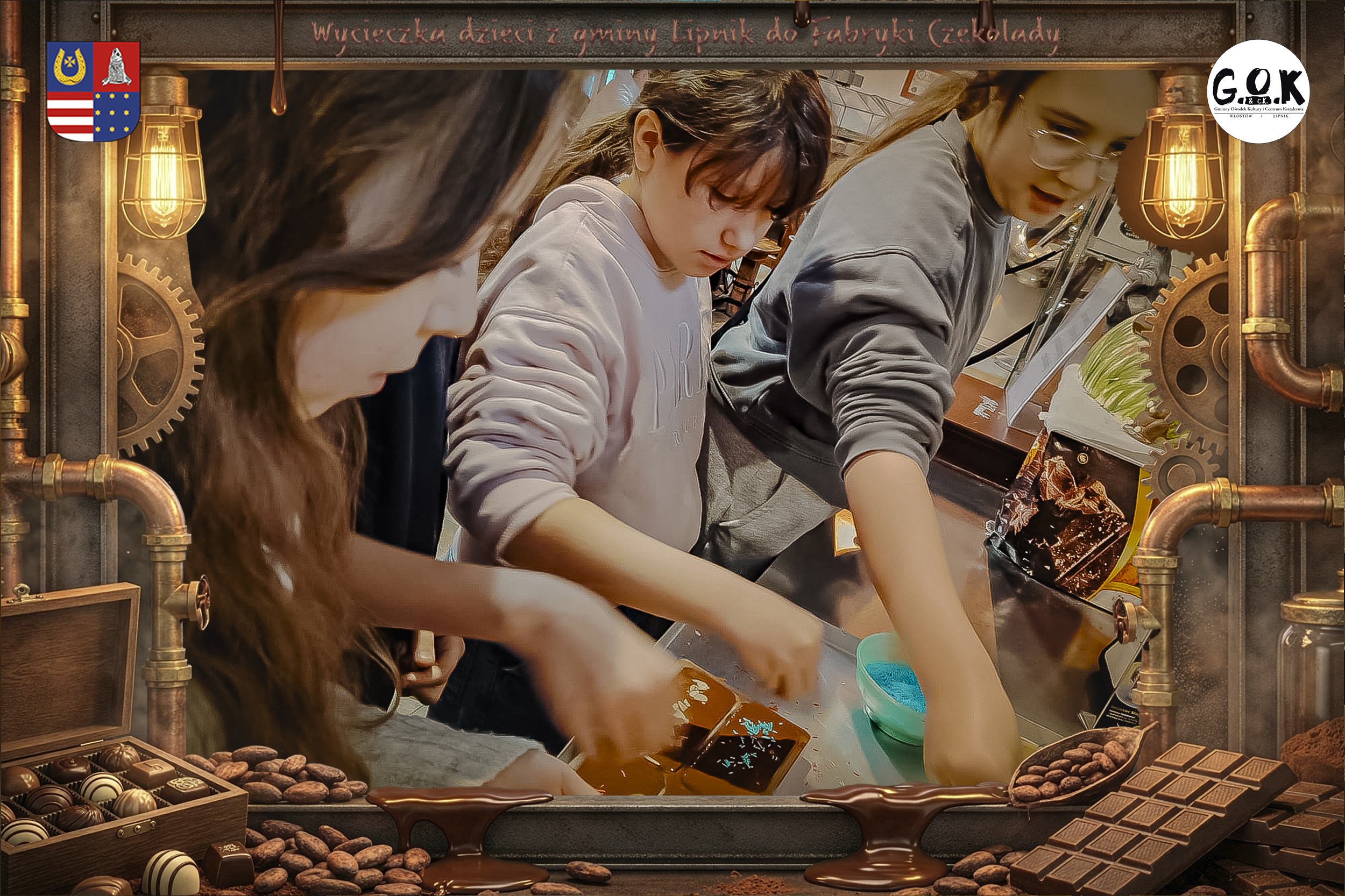 Dzieciaki wskoczyły do czekoladowego świata, gdzie miedziane rury, koła zębate i cały ten „fabryczny teatr” robią klimat jak z filmu, tylko zamiast dymu z komina unosi się zapach kakao. Na zdjęciach widać to najlepiej: raz cisza przed burzą (pusta sala, gotowa na małych odkrywców), a chwilę później już pełen ruch, śmiech, ciekawskie spojrzenia i te miny typu: „Dobra, tu się dzieje magia”