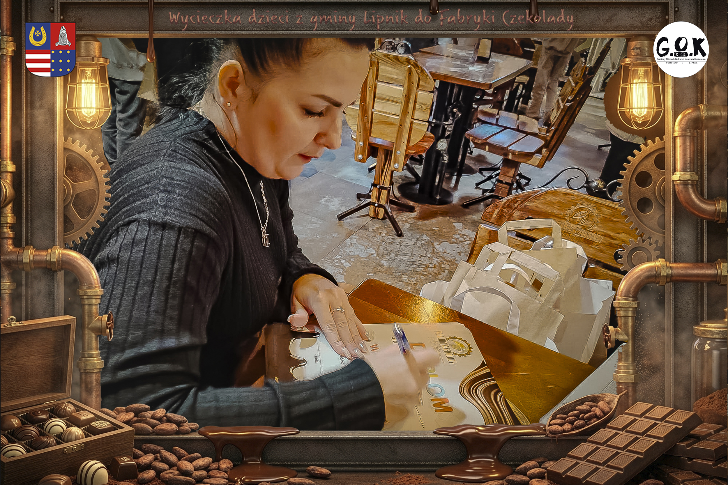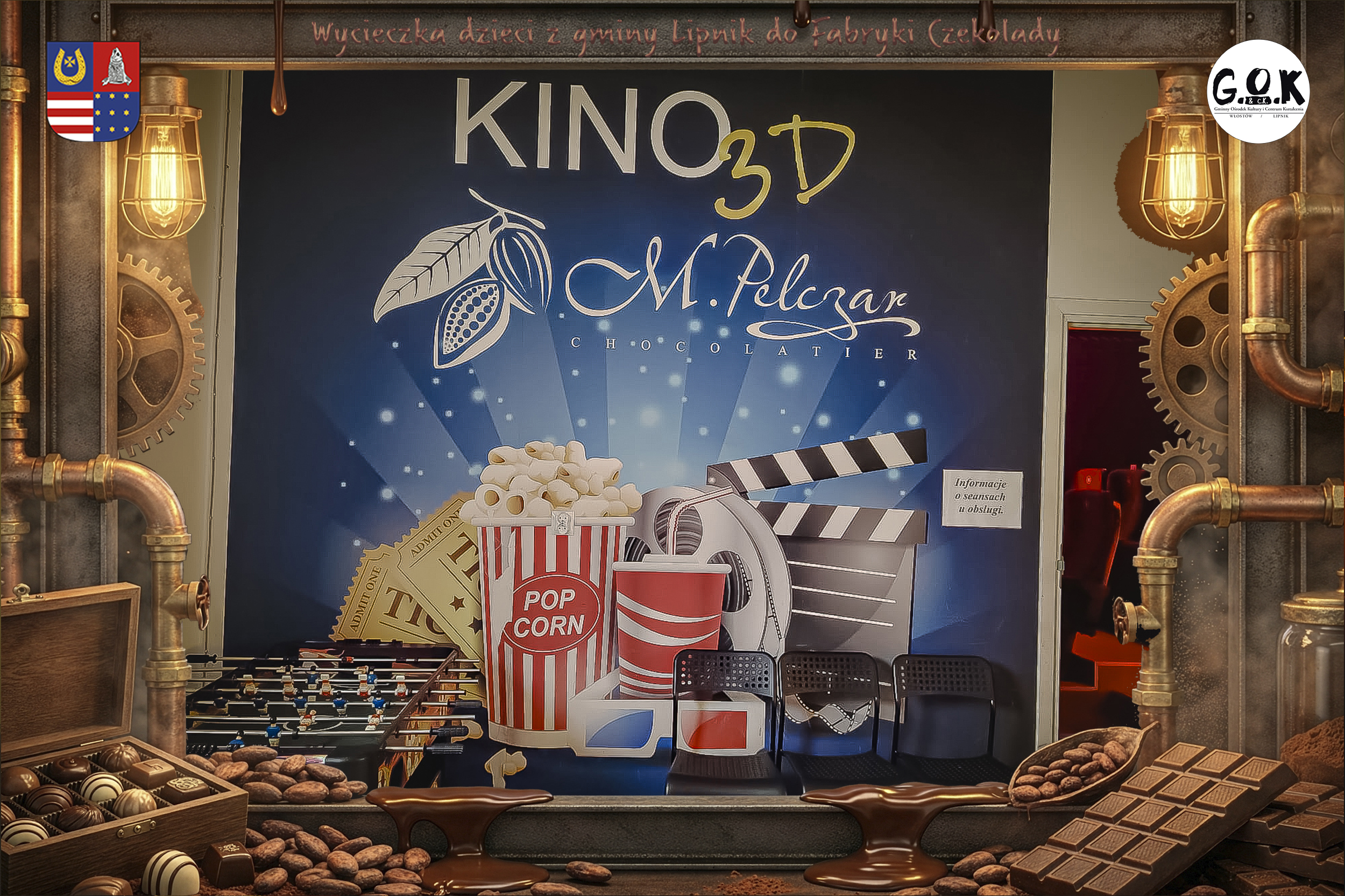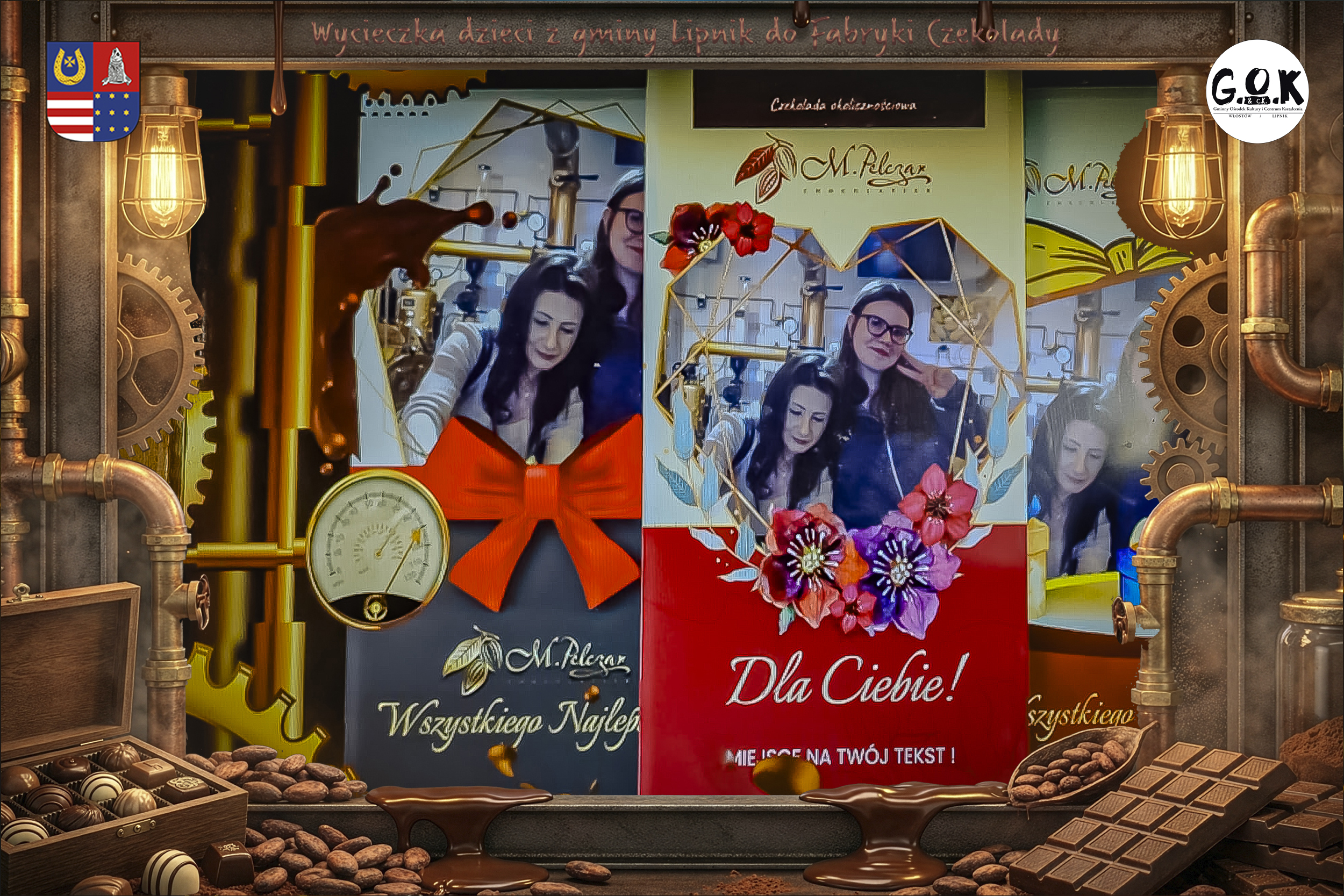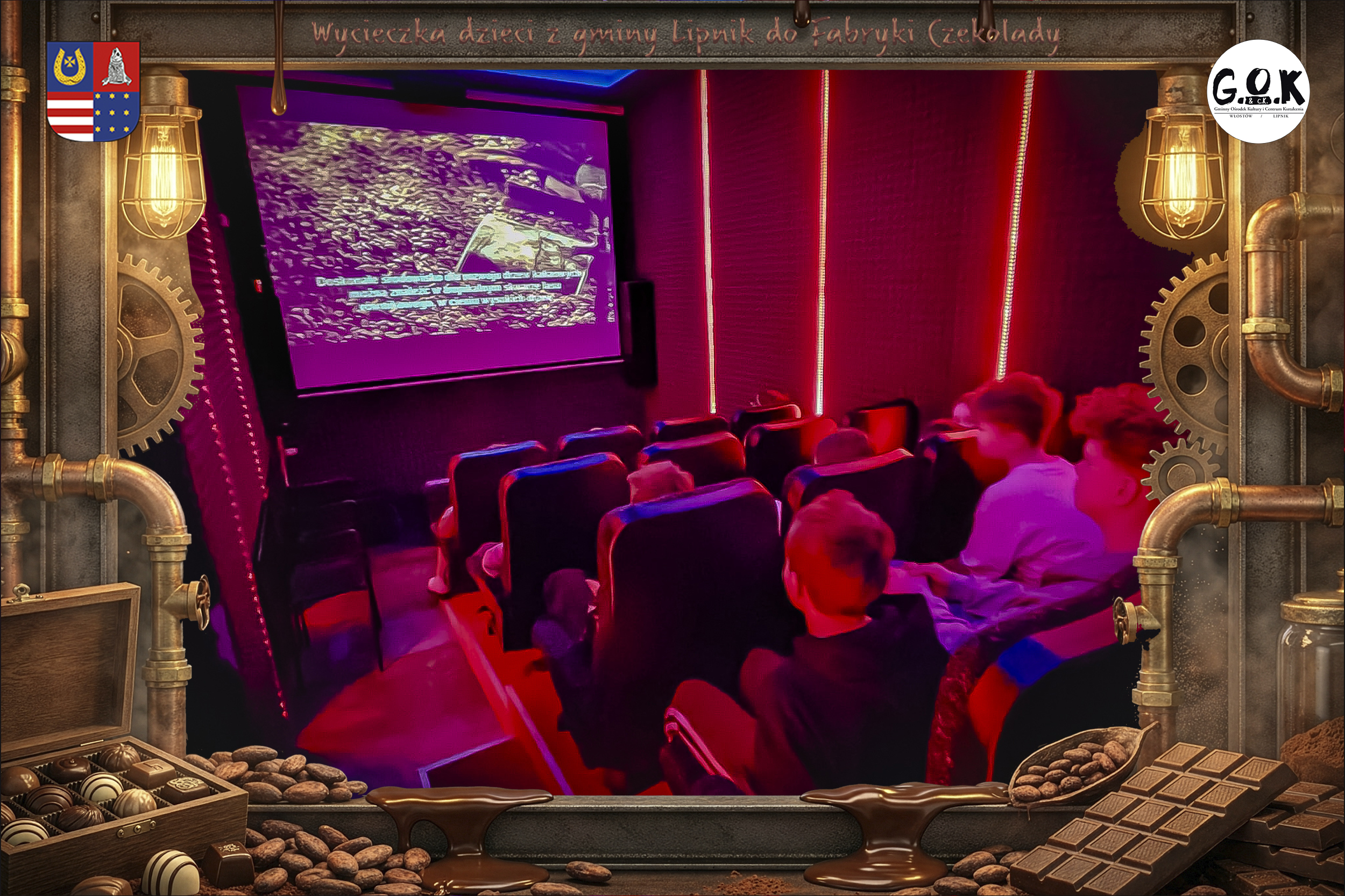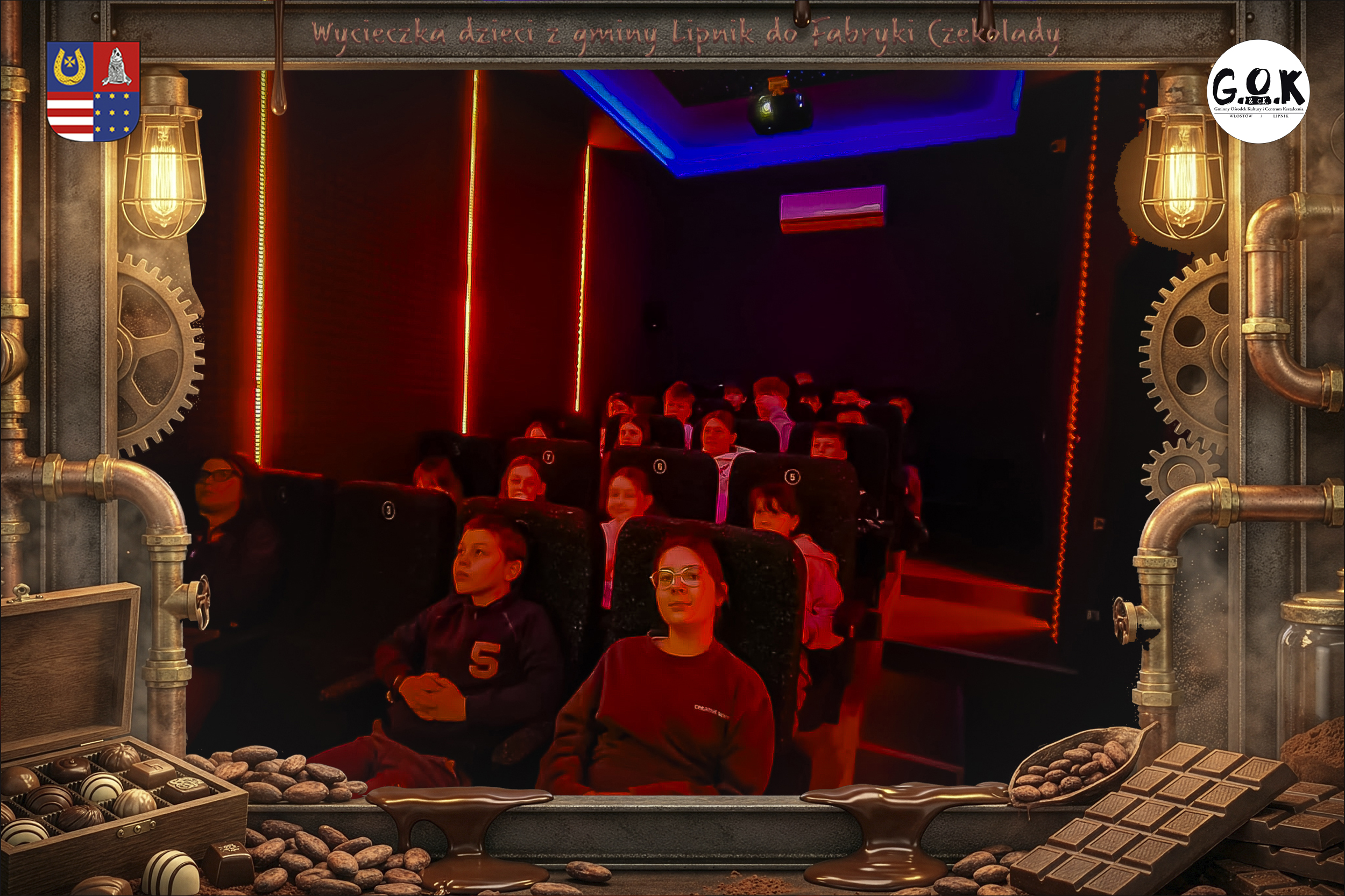 Dzieciaki wskoczyły do czekoladowego świata, gdzie miedziane rury, koła zębate i cały ten „fabryczny teatr” robią klimat jak z filmu, tylko zamiast dymu z komina unosi się zapach kakao. Na zdjęciach widać to najlepiej: raz cisza przed burzą (pusta sala, gotowa na małych odkrywców), a chwilę później już pełen ruch, śmiech, ciekawskie spojrzenia i te miny typu: „Dobra, tu się dzieje magia”