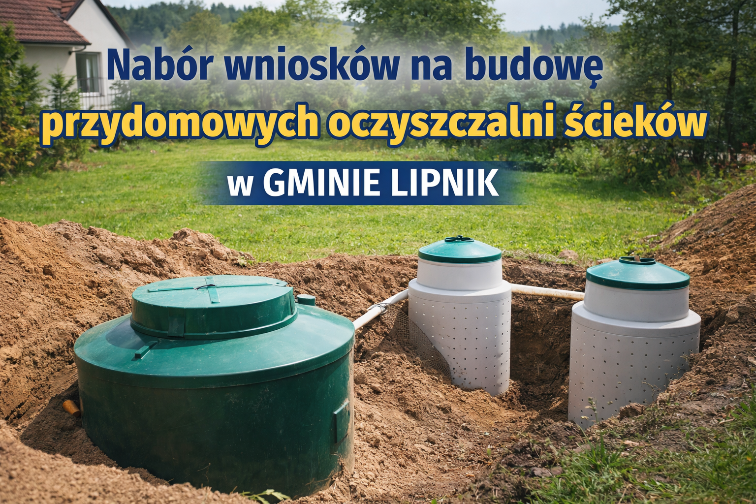 Wójt Gminy Lipnik informuje, że w związku z planowanym złożeniem wniosku na dofinansowanie budowy przydomowych oczyszczalni ścieków na terenie gminy Lipnik w ramach interwencji I.10.10 Infrastruktura na obszarach wiejskich oraz wdrożenia koncepcji inteligentnych wsi – obszar A Interwencje w zakresie systemów indywidualnego oczyszczania ścieków w ramach Planu Strategicznego dla Wspólnej Polityki Rolnej na lata 2023 – 2027, trwają zapisy na realizację przedmiotowej inwestycji na nieruchomościach położonych na terenie gminy.